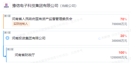 豫信电子科技集团由实际控制人、控股股东河南省人民政府国有资产监督管理委员会直接持股70%,河南省财政厅旗下河南投资集团有限公司持股30%。